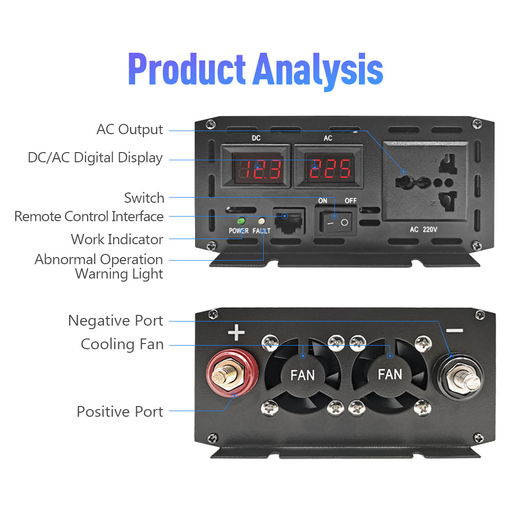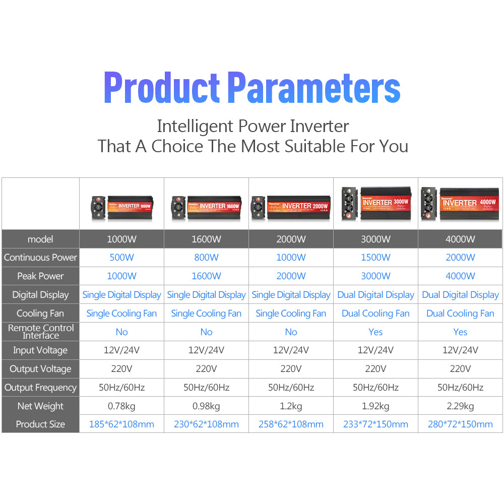 RDDSPON Car Inverter 2000W 3000W 4000W Converter Power Solar Inverter Universal plug