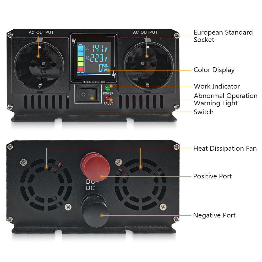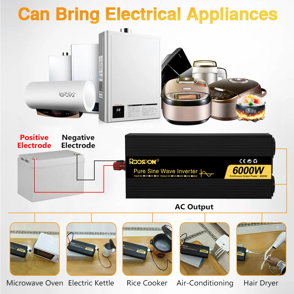 RDDSPON Pure Sine Wave Inverters 4000W 5000W 6000W Double EU SocketDC 12V 24V 48V to AC 110V 220V,50Hz,60Hz Voltage Converter